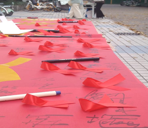 4.粘贴红丝带 手捧红丝带,钟爱再前行