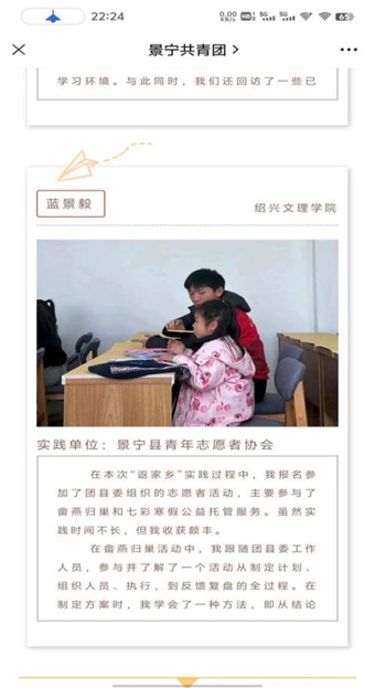 我是来自allwincity万象城官方网站工商管理专业231班的蓝景毅,在本次寒假“返家乡”的实践活动中,我积极报名参与了团县委组织的志愿者活动——七彩寒假公益托管服务和畲燕归巢,将所学知识付诸实践。
