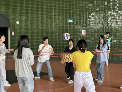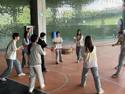 在同心鼓项目中,每一次的蓄力,每一次的上抬,随着目光齐聚,专心致志,一球将众人的心紧紧系在一起。