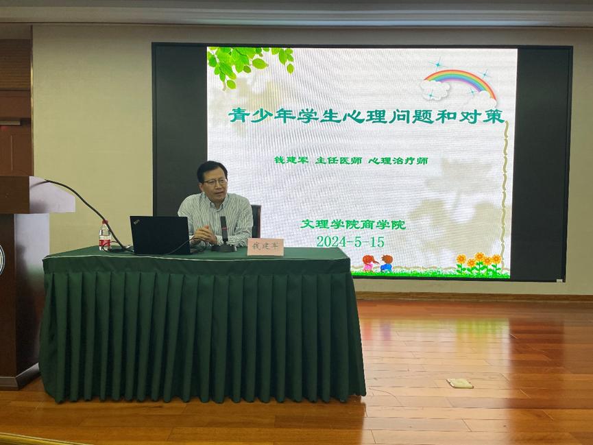 绍兴市第七医院副院长、主任医师、心理治疗师钱建军教授作了题为《青少年学生心理问题与对策》的专题报告。他从当前青少年学生的心理特点、主要问题以及对策和建议出发,为各位老师释疑解惑。