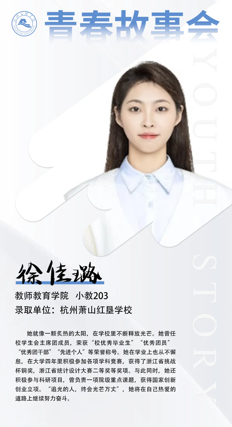 徐佳璐同学以考编必须了解的内容为切入点,以自身为例,分享自身在考编过程中经历的各种艰辛。多次考编失败的经历无法击垮这个女孩,她认为:只有坚持,才不会辜负自己的努力;只有坚持,才能摘取胜利的果实。