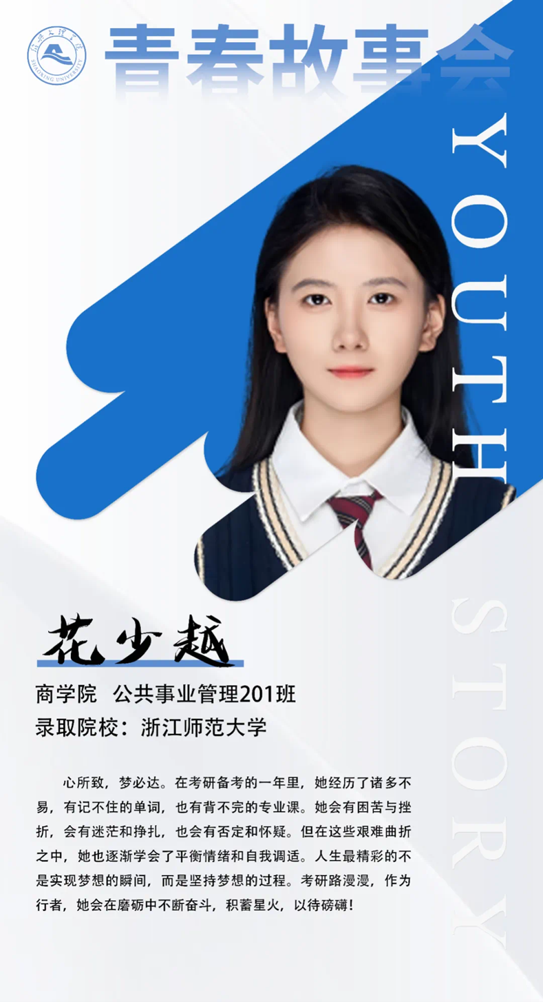 “青春故事会”以“青年讲给青年听”的形式,力争将思想引领走进青年同学心里。自“青春故事会”创办以来,已邀请100余名学科竞赛、创新创业、考研考编、志愿服务等领域的优秀师生、校友,以沙龙或讲座形式分享自身经验,帮助同学们解答学习、生活、就业多方面困惑。本期“青春故事会”邀请了5位2024年考研、考编上岸的同学作经验分享,帮助同学们了解形势、明确目标、积累经验。
